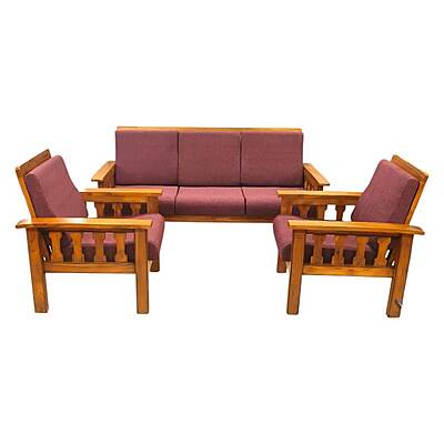 JNW Akbar Sofa Set|3+1+1|Natural|Spl Dx Premium|Wooden Sofa Set