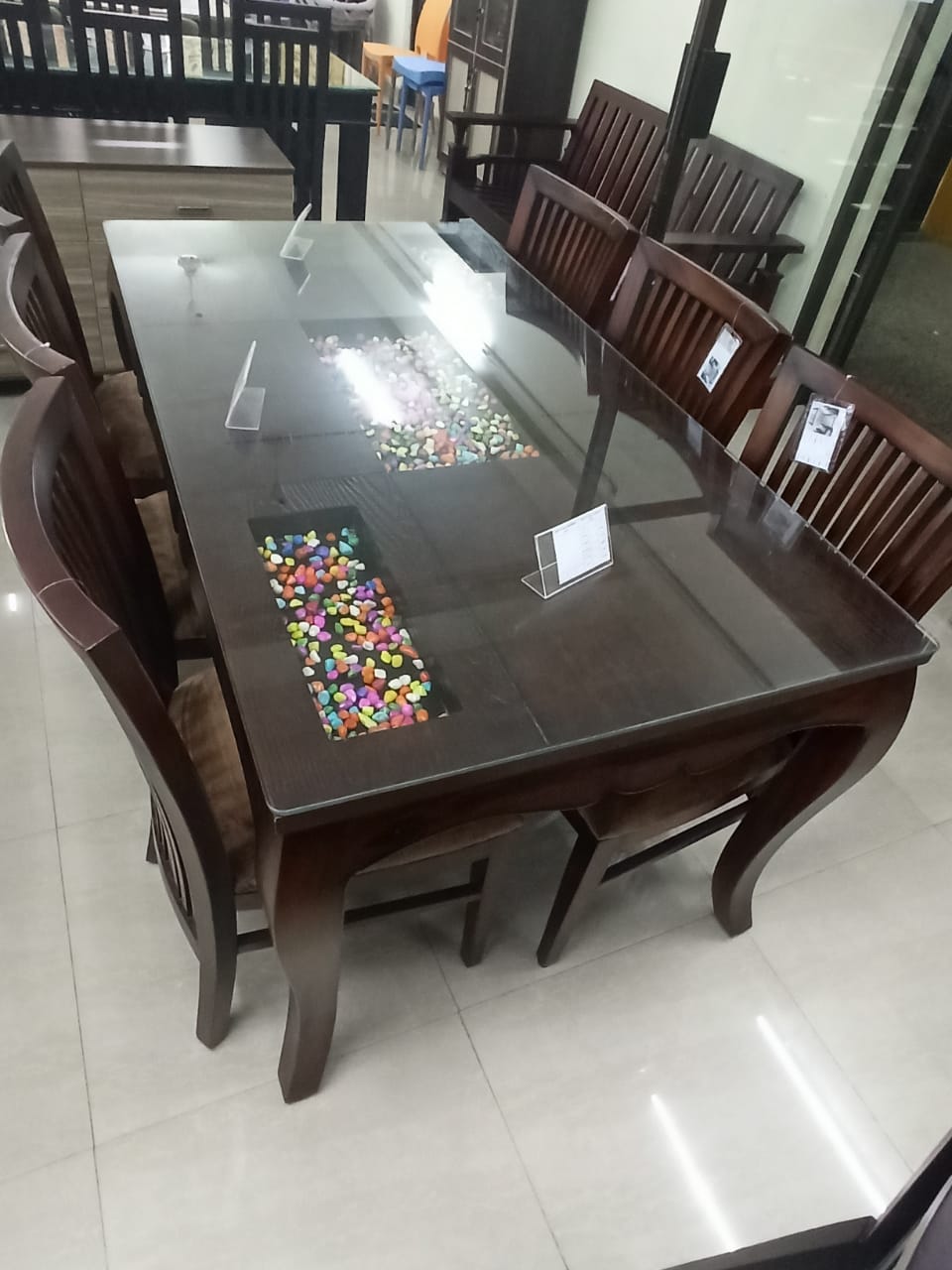 JNW DT Crystal Dining Table Base teakwood top MDF With Glass Top|72X36|Rosewood-Rw-22||Dining Table
