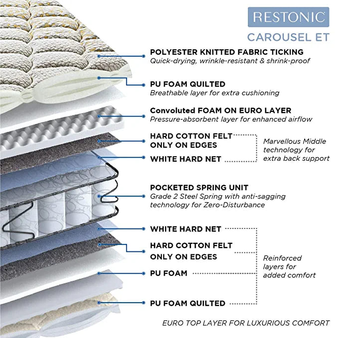 PEPS RESTONIC POCKETED EURO TOP CAROUSEL|78X60X6|||Spring Mattress