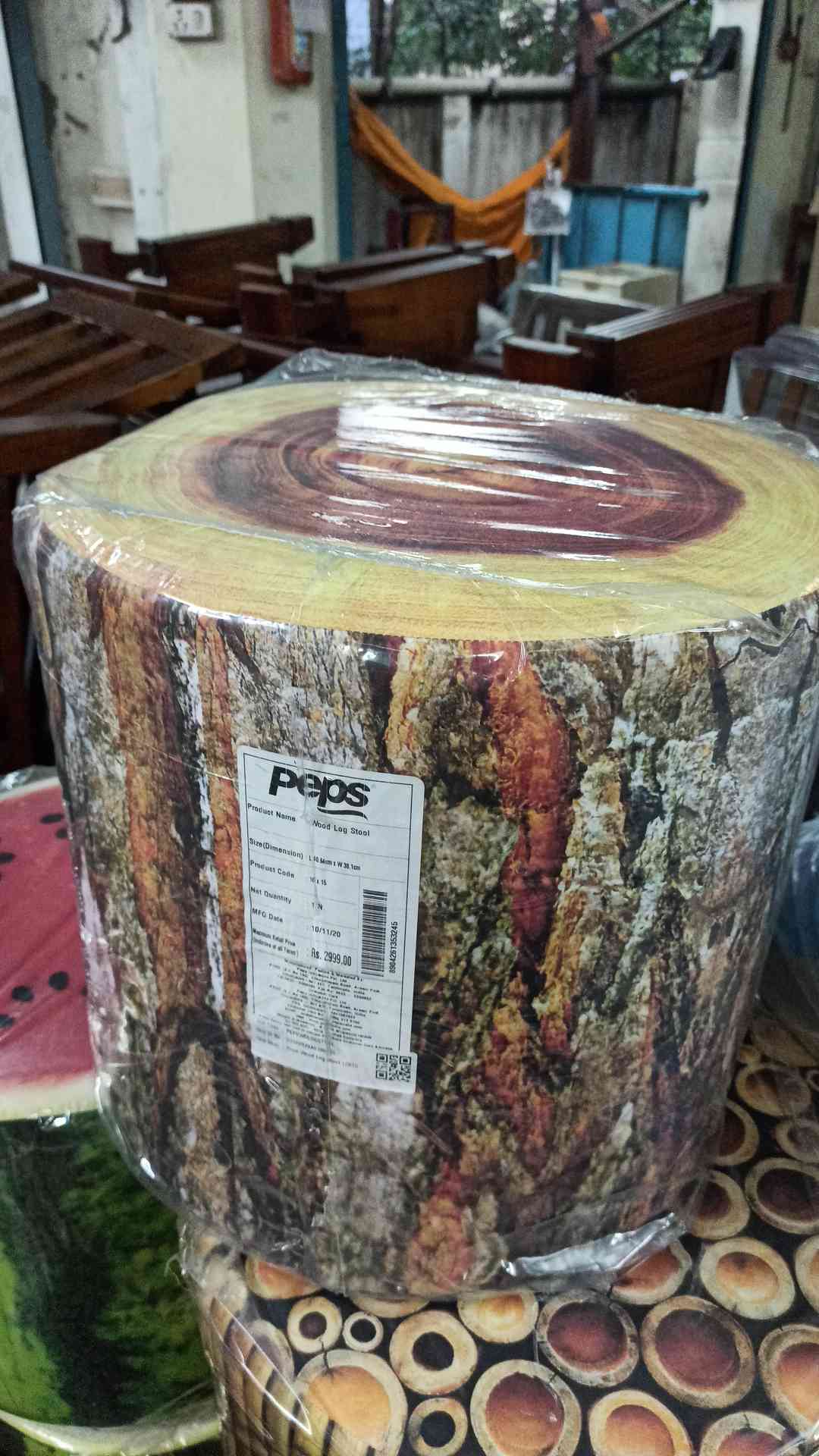 PEPS Wood- Log Stool|16X15|||Pillow