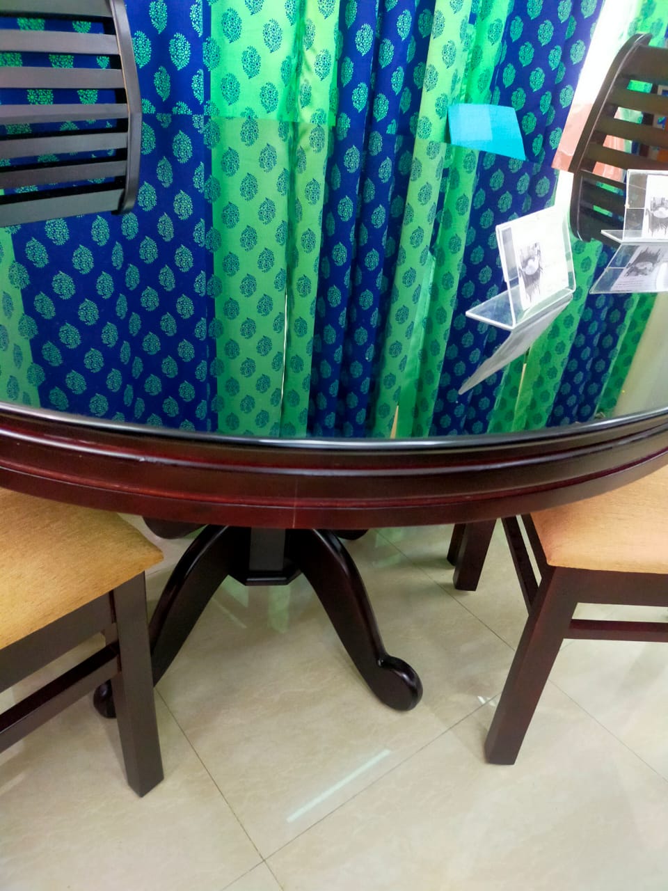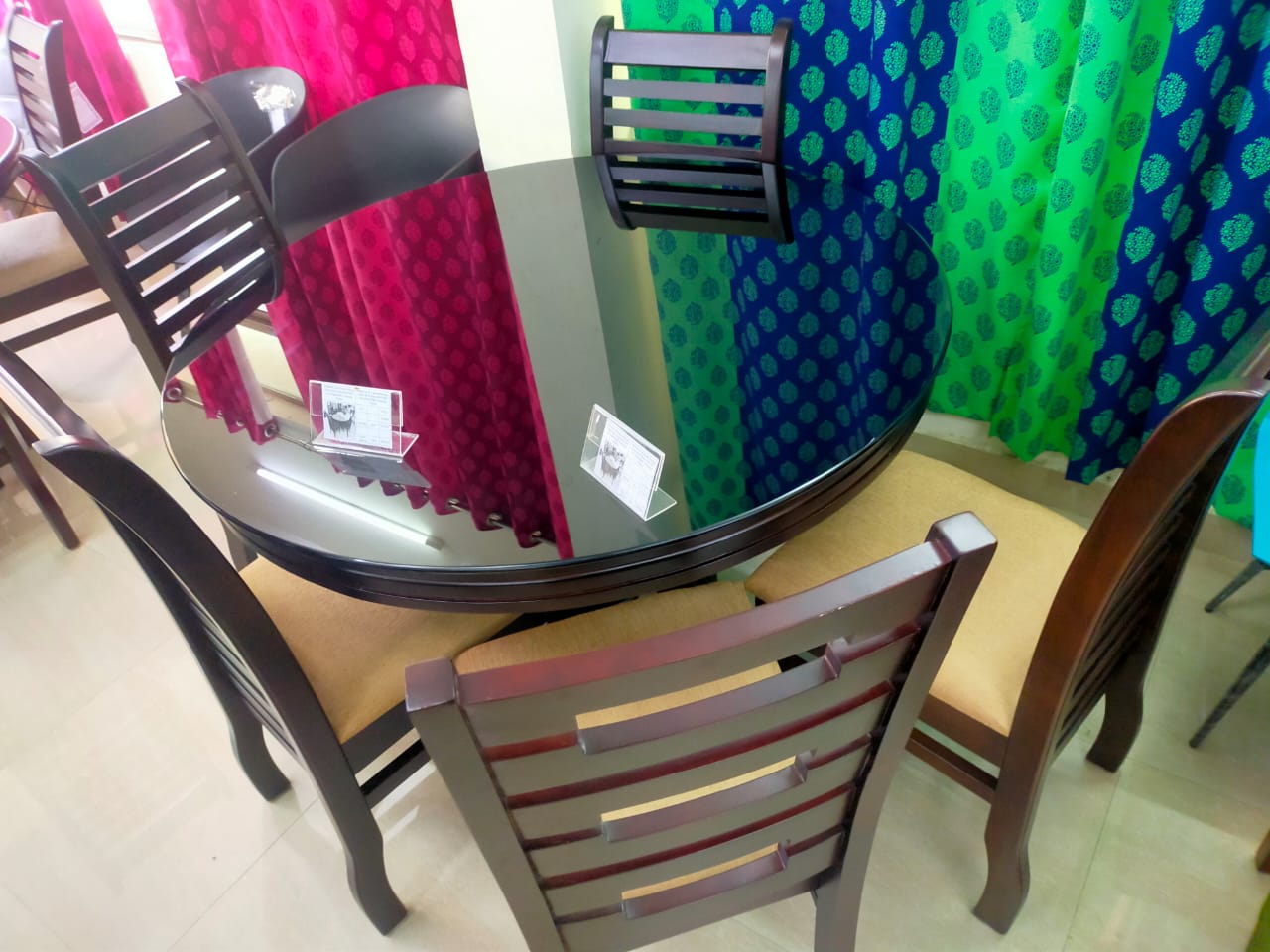 PKR ZDT 410 Round Dining Table With Glass With ZDC 511 PARADISE 4 Dininig Chairs|48X48|Mahagony||Dining Set