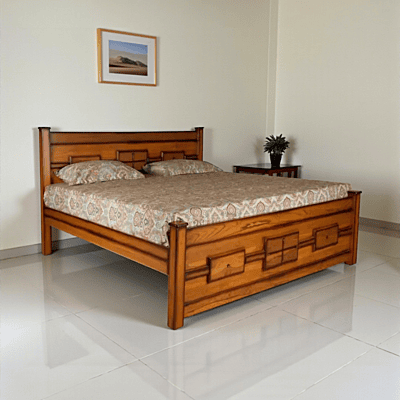 Discover the timeless attractiveness of a teakwood bed/cot, made from high-quality teak wood for long-lasting elegance and durability. A teakwood bed/cot, with its rich golden-brown tint and characteristic grain patterns, lends refinement to any bedroom decor. This furniture piece is resistant to rust, decay, and termites, ensuring long-lasting quality with minimal care. A teakwood bed/cot's clean lines and minimalist form make it suitable for a wide range of decor styles, from classic to contemporary. Invest in comfort and design with a teakwood bed/cot, a beloved addition to any home that will provide years of restful sleep and lasting beauty.