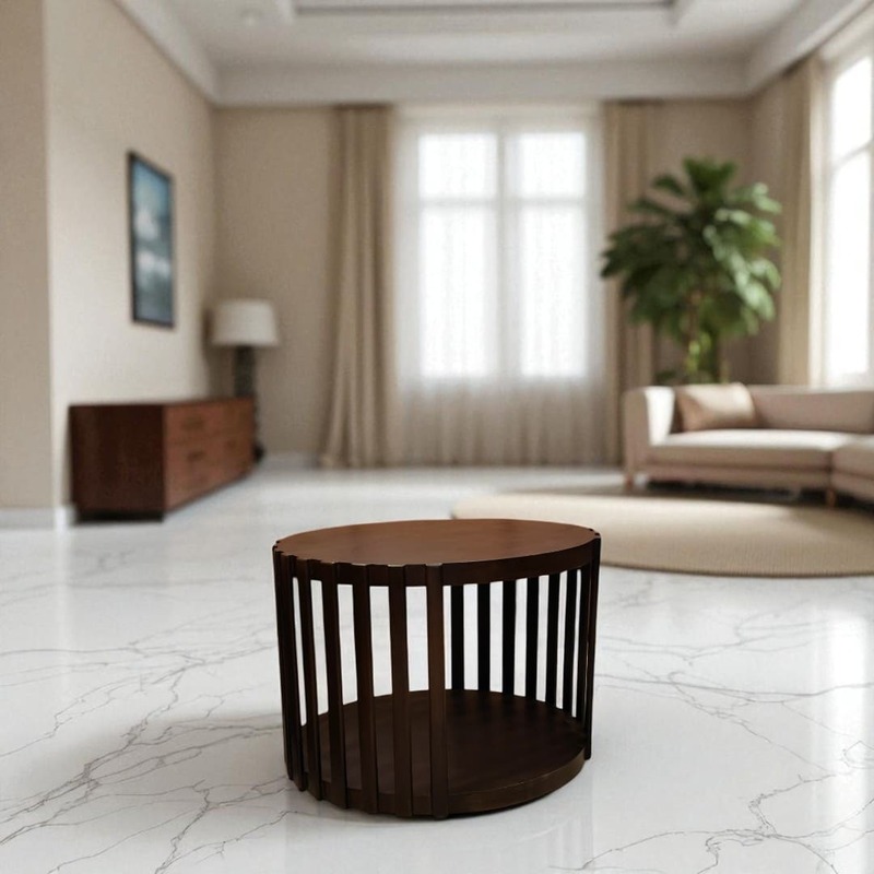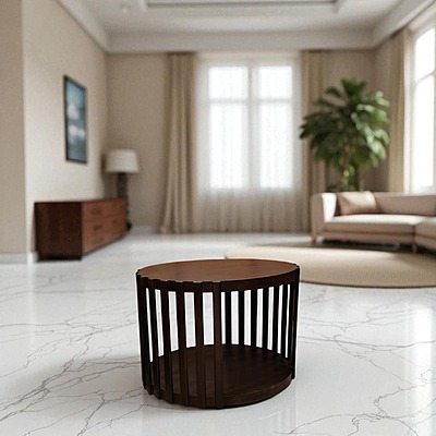 AKS Rudra Round Center Table||Walnut||Bed Side Table